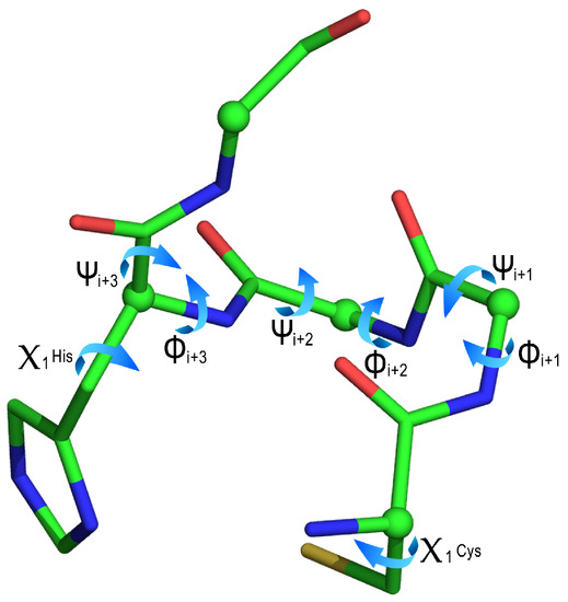 A detailed analysis of the C-X1-X2-H-X3 backbone torsion angles (ϕ and ψ), and of Cys and His χ1 dihedral angles was performed for highlighting differences among the clusters (Figure 8 and Table 4).