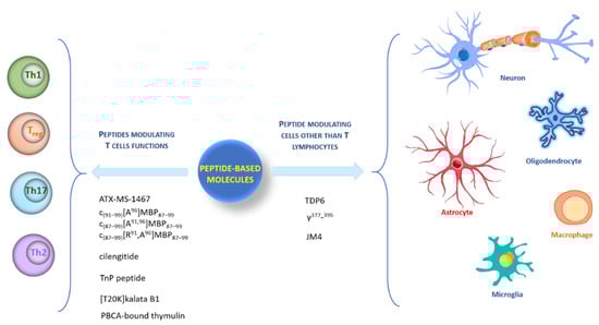 Here, we describe peptide systems arbitrarily sorted into two groups: peptides modulating T cells’ functions and peptides modulating cells other than T lymphocytes (Figure 1).