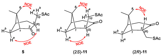 NOE-interactions in compounds (3R)-5, (2S)-11, and (2R)-11.