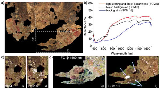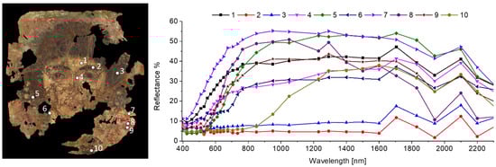 - Cloutis, E.; MacKay, A.; Norman, L.; Goltz, D. Identification of historic artists’ pigments using spectral reflectance and X-ray diffraction properties I. Iron oxide and oxy-hydroxide-rich pigments. J. Near Infrared Spectrosc. 2016, 24, 27–45. [Google Scholar] [CrossRef]