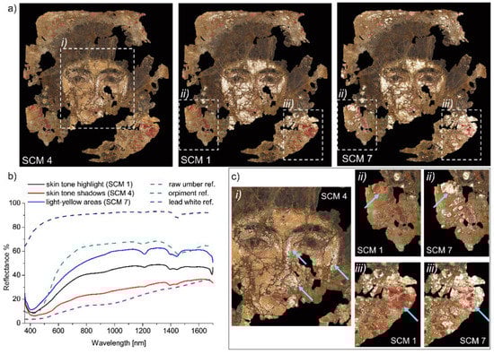 - Delaney, J.K.; Dooley, K.A.; Radpour, R.; Kakoulli, I. Macroscale multimodal imaging reveals ancient painting production technology and the vogue in Greco-Roman Egypt. Sci. Rep. 2017, 7, 1–12. [Google Scholar] [CrossRef] [Green Version]