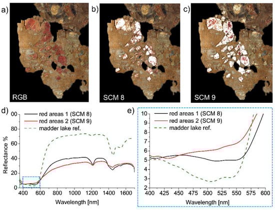 - Fonseca, B.; Patterson, C.S.; Ganio, M.; MacLennan, D.; Trentelman, K. Seeing red: Towards an improved protocol for the identification of madder-and cochineal-based pigments by fiber optics reflectance spectroscopy (FORS). Herit. Sci. 2019, 7, 1–15. [Google Scholar] [CrossRef]