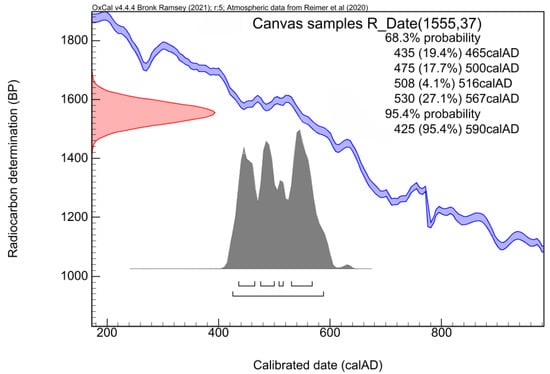 | Canvas samples | 82.40 ± 0.38 | 1555 ± 37 | 435–570 AD | 425–590 AD |