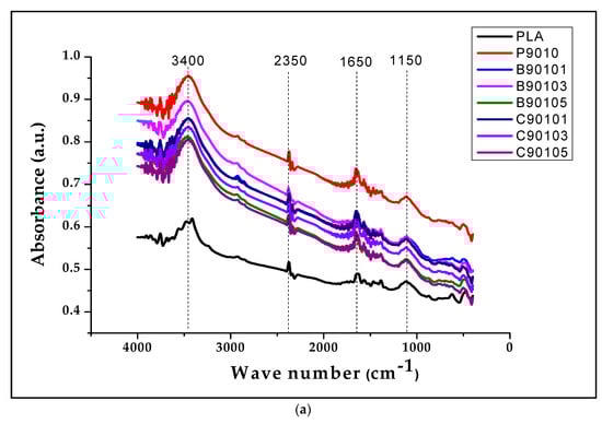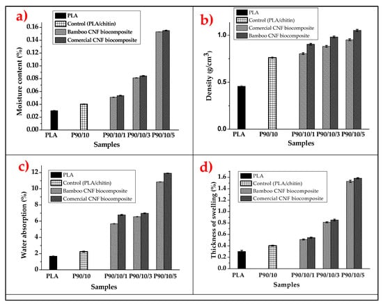 2.2. The Physical Properties of Bamboo and Commercial CNF-Reinforced PLA/Chitin Bionanocomposites