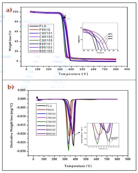 2.6. The Thermal Properties of Bamboo and Commercial CNF-Reinforced PLA/Chitin Bionanocomposites