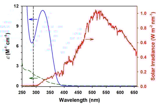 2.6. Ionic Strength Effect, Optical Properties, and Cross Photoreaction in Water