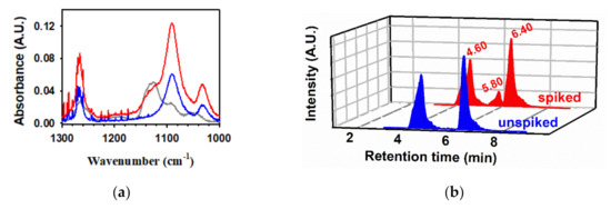 Unfortunately, the FTIR spectrum in the study by Griffith et al. was complicated by water vapor that overlapped the signals of interest, making it truly impossible to confirm if the new products were really there. Thus, the analytical challenge was reapproached by Eugene et al., who carefully examined the headspace FTIR and liquid NMR spectral signals before and after spiking acetoin, lactic acid, and acetic acid external standards into the post-photolysis mixtures to confirm and/or discard the presence of these components in the mixture [2,77,83]. The careful quality assurance approach of Eugene et al. summarized in Figure 5 also included more conclusive chromatographic methods using multiple detectors and the use of derivatization techniques, which altogether served to reject the hypothesis of the photochemical formation of acetoin and lactic acid [2,77,83]. The absence of acetoin and lactic acid in the photoproduct mixture was demonstrated by comparing the results before and after spiking with standards (Figure 5) by the mismatch in (1) the FTIR spectra of gases, (2) chromatograms with multiple detectors and lower limits of detections and other spectroscopies, and (3) the 1H NMR spectra (chemical shift position, line shape, appearance of new peaks or shoulders, and intensity ratio for the −CH3 doublets) [2,77,83]. Instead, it became clear that the signals attributed to acetoin and lactic acid were contributed by the seven-carbon species (oxo-C7 product) of mass 176 amu identified by Guzman et al. [5], with possible contributions of its precursor β-ketocarboxylic acid intermediate shown in Scheme 9 [2,77,83]. In addition, low levels of acetic acid became evident in these analyses.