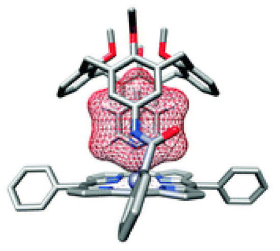 Thus, Zn-porphyrin 7 capped with calix[4]arene offers in its cavity a guest-binding environment for selective binding of small organic molecules, which makes it possible to distinguish even small structural differences between pyridine and 4-methylpyridine.Guests that are shaped in a way that is complementary to the confined cavity are capable of fitting into and binding to the cavity by van der Waals attractive interactions.
