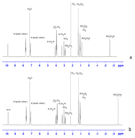 1H-NMR spectra of external (51) (a) and internal (53), (b) complexes in CDCl3 (300 MHz, 298 K).
