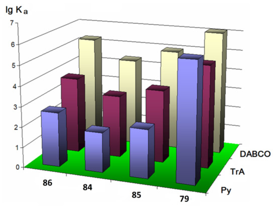 It was shown that receptors 37, 39, and 42 display very different behaviors in the presence of bidentate substrate DABCO, with 37 allowing a fast exchange between bound and free substrates, while 39 and 42 provide effective bounding of DABCO.