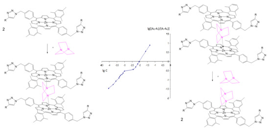 - Mamardashvili, N.Z.; Mamardashvili, G.M.; Weiss, J. Complexation of Zinc Porphyrintes with 1,4-Diazabicyclo[2,2,2]octane. Russ. J. Inorg. Chem. 2005, 50, 218–224. [Google Scholar]