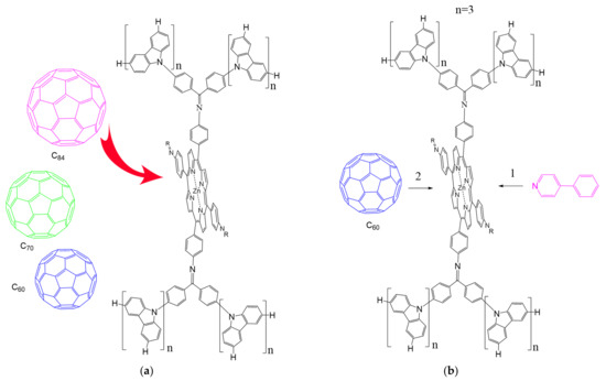 - D’Souza, F.; Gadde, S.; Zandler, M.E.; Itou, M.; Araki, Y.; Ito, O. Supramolecular complex composed of a covalently linked zinc porphyrin dimer and fulleropyrrolidine bearing two axially coordinating pyridine entities. Chem. Commun. 2004, 2276–2277. [Google Scholar] [CrossRef]