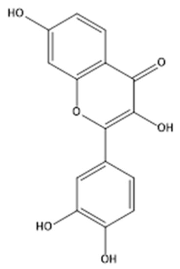 An increasing number of studies have shown that plant-derived flavonoids are particularly important in our diet, as they decrease the risk of cardiovascular diseases, neurodegenerative diseases, and DM [10]. Fisetin (3,3′,4′,7-tetrahydroxyflavone, Figure 1) is an essential bioactive flavonoid found in Cotinus coggygria Scop., which is distributed in Asia and North America [11] as a resource plant with great utilization value. It has various pharmacological properties, such as antimicrobial, antioxidant, anti-inflammatory, hepatoprotective, anti-tumor, and immunostimulant properties [12,13,14]. Messaadia et al. demonstrated that fisetin exhibits the best antioxidant activity with a high free radical scavenging capacity, followed by catechin and apigenin [15]. Choi et al. [16] found that the flavonoid fisetin (FI) may be useful for ameliorating the deleterious effects of high-fat diet (HFD)-induced obesity and related metabolic complications, such as hyperlipidemia, nonalcoholic fatty liver disease (NAFLD), hepatic fibrosis, and insulin resistance (IR). Furthermore, fisetin has been reported to be a potential agent for the development of novel strategies for diabetes treatments that suppress oxidative stress under hyperglycemic conditions in human monocytes [17]. Madeswaran et al. [18] compared the α-amylase inhibitory activity of flavonoids using in silico docking studies and found that baicalin had the strongest inhibitory activity, followed by apigenin, fisetin, wogonin, and scopoletin. Because of the phenolic hydroxyl structure, the flavonoids can inhibit α-amylase and α-glucosidase activity, thus retarding the absorption of glucose [8]. Yue et al. [19] investigated the in vitro inhibitory activity of fisetin on α-glucosidase, determined its inhibition type, and further conducted a molecular docking analysis to demonstrate the inhibitory mechanism.