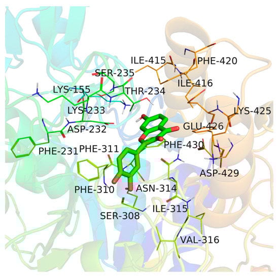 26. Trott, O.; Olson, A.J. AutoDock Vina: Improving the speed and accuracy of docking with a new scoring function, efficient optimization, and multithreading. J. Comput. Chem. 2009, 31, 455–461. [Google Scholar] [CrossRef] [Green Version]