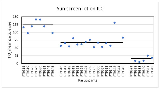 Finally, two consumer products, a sun screen lotion and a toothpaste, were selected for an ILC allowing the participants to use PTA, spICP-MS, TEM/SEM or a multiple of these techniques to determine the particle size of the TiO2 particles in these products. Participants were asked to determine the mean particle size and the D50 value, the median particle size where 50% of the particles is smaller than that size and 50% larger. This, of course, is related to the EU definition of an NM for regulatory purposes where, for 50% or more of the particles in the number size distribution, one or more external dimensions are in the size range of 1–100 nm. As a consequence, if the D50 value is below 100 nm the material is an NM and this should have been declared on the packaging of the product.
