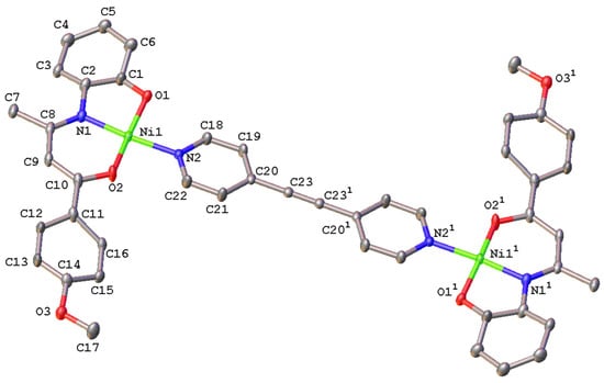 3.2.5. [{(4-MeO-C6H4-C(O)CH=C(CH3)N-C6H4-2-O)Ni}2(µ-NC5H4-C≡C-C5H4N)] (8)