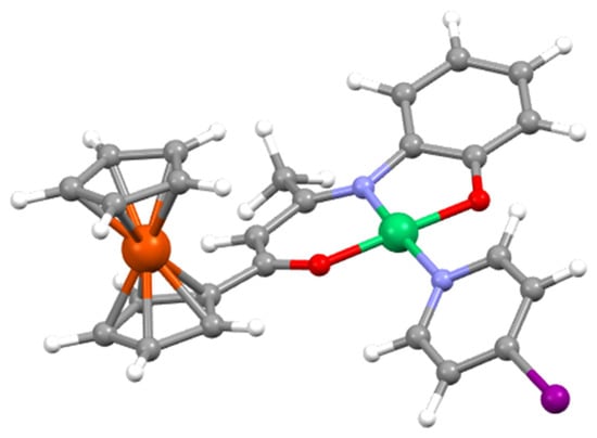 3.2.4. [{CpFe(C5H4)-C(O)CH=C(CH3)N-C6H4-2-O}Ni(4-NC5H4I)] (7)