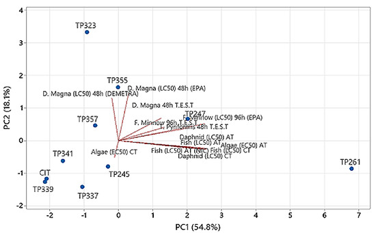 Comparison of aquatic toxicity of CIT TPs by PCA.