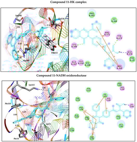 | Lys418:NZ―compound 12 | 5.93 | Tyr180―compound 12 | 4.72 | |||