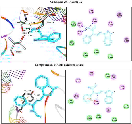 | Thr232:OG1―compound 20 | 2.71 | π-π interactions | ||||