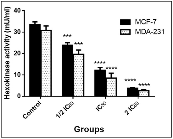 3.3.4. Inhibition of Warburg Effect through Hexokinase (ELISA)