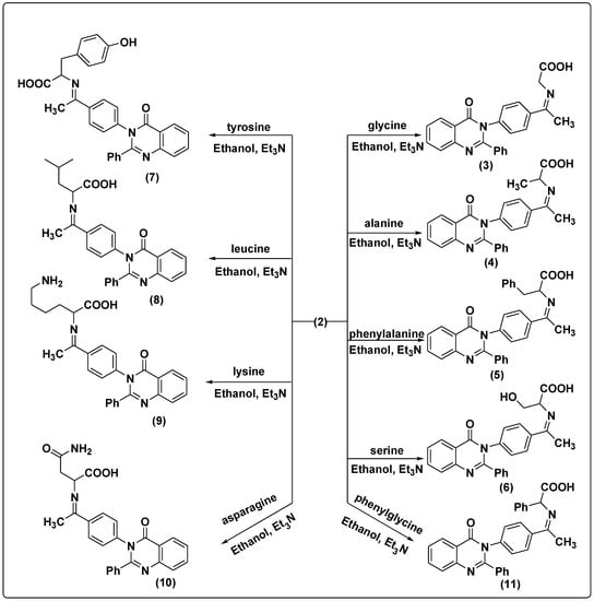3-Hydroxy-2-(1-(4-(4-oxo-2-phenylquinazolin-3(4H)-yl) phenyl) ethylidene amino) Propionic Acid (6)