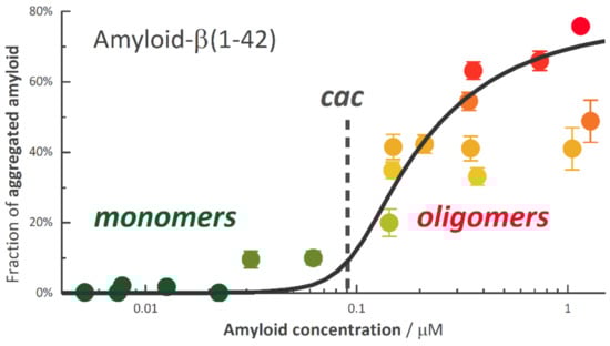 - Novo, M.; Freire, S.; Al-Soufi, W. Critical aggregation concentration for the formation of early Amyloid-β (1–42) oligomers. Sci. Rep. 2018, 8, 1–8. [Google Scholar] [CrossRef] [PubMed]