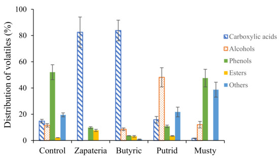 | Attributes | Control | Zapateria | Butyric | Putrid | Musty | ||