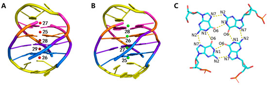 - Song, J.; Ji, C.; Zhang, J.Z. The critical effect of polarization on the dynamical structure of guanine quadruplex DNA. Phys. Chem. Chem. Phys. 2013, 15, 3846–3854. [Google Scholar] [CrossRef] [PubMed]