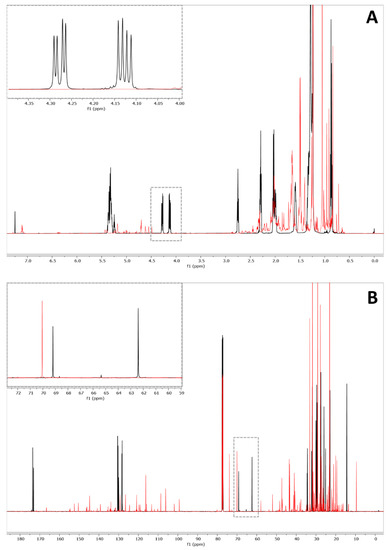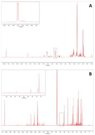 - Alexandri, E.; Ahmed, R.; Siddiqui, H.; Choudhary, M.I.; Tsiafoulis, C.G.; Gerothanassis, I.P. High Resolution NMR Spectroscopy as a Structural and Analytical Tool for Unsaturated Lipids in Solution. Molecules 2012, 22, 1663. [Google Scholar] [CrossRef] [PubMed]