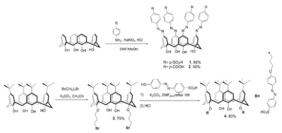 - Menon, S.K.; Patel, R.V.; Panchal, J.G. Self-Aggregation and Solubilizing Properties of the Supramolecular System Based on Azobenzenesulfonate Calix[4]arene and CTAB. J. Incl. Phenom. Macrocycl. Chem. 2009, 67, 73–79. [Google Scholar] [CrossRef]