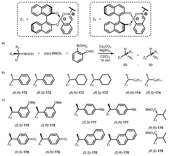 - Tickell, D.A.; Mahon, M.F.; Bull, S.D.; James, T.D. A Simple Protocol for NMR Analysis of the Enantiomeric Purity of Chiral Hydroxylamines. Org. Lett. 2013, 15, 860–863. [Google Scholar] [CrossRef]