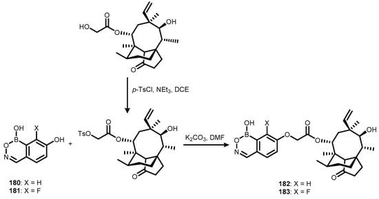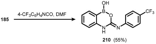 - Adamczyk-Woźniak, A.; Borys, K.M.; Sporzyński, A. Recent Developments in the Chemistry and Biological Applications of Benzoxaboroles. Chem. Rev. 2015, 115, 5224–5247. [Google Scholar] [CrossRef]