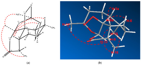 Selected ROESY cross peaks for (−)-6-epi-artemisinin (2): (a) 3D structure drawing; (b) 3D model by chemBioDraw Ultra 12.0.