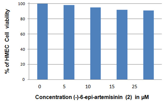 Effect of (−)-6-epi-artemisinin (2) on cell viability of normal Human Mammary Epithelial Cells HMEC.