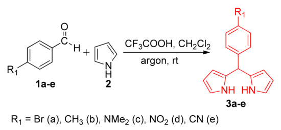 3.4. General Synthesis of Dipyrromethanes 5a–g