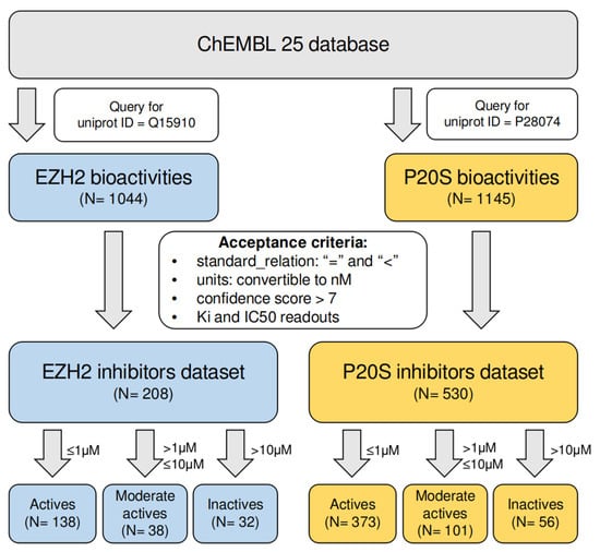 Overview of the assembly process for the EZH2 inhibitors and the P20S inhibitors datasets.