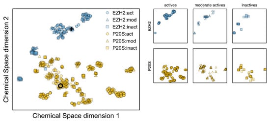 While we had previously carried out a comprehensive analysis on the known chemical space of P20S inhibitors [8], to our knowledge, a similar study does not exist for EZH2 inhibitors. We therefore conducted a summary analysis of several properties and the chemical space of EZH2 inhibitors and compared them with those of P20S (summarised in Figure 3).