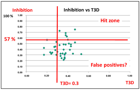 After the first round selection and screening we had the conclusion that T3D = 0.3 might have been a useful cut-off value even if it might result in numerous virtual false positives.