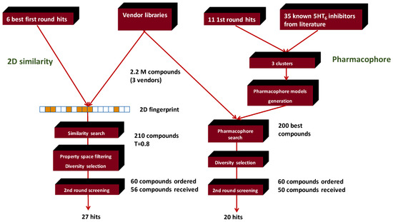 The most common strategy is the sequential approach that divides the VS pipeline in consecutive steps (Table 2). It normally starts with a prefiltering 2D similarity search to reduce the virtual chemical space to a manageable number (several thousand) for the more computationally demanding SB methods, that are generally used at final stages on a small number of compounds. This approach was successfully used for many different targets.