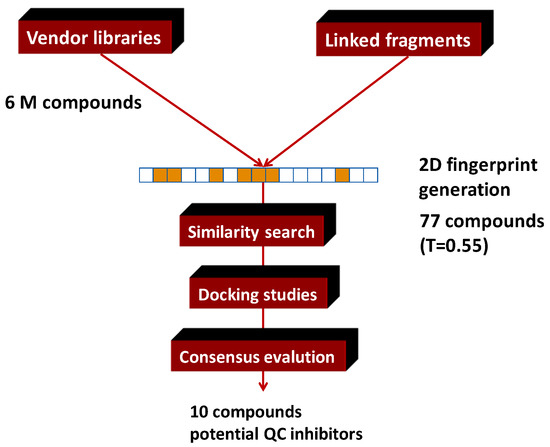- Szaszkó, M.; Hajdú, I.; Flachner, B.; Dobi, K.; Magyar, C.; Simon, I.; Lőrincz, Z.; Kapui, Z.; Pázmány, T.; Cseh, S.; et al. Identification of potential glutaminyl cyclase inhibitors from lead-like libraries by in silico and in vitro fragment-based screening. Mol. Divers. 2017, 21, 175–186. [Google Scholar] [CrossRef]
