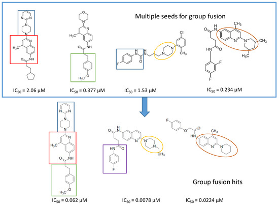 Group fusion methods apply multiple reference compounds and combine the individual similarity measures [59]. In this approach the similarity scores are first calculated to ‘n’ reference compounds for each compound within a medium sized searchable compound library and then the ‘n’ similarity measures obtained for each compound of the library are accumulated (‘fused’). The calculation is followed by ranking the compounds according to the ‘fused’ similarity measures.