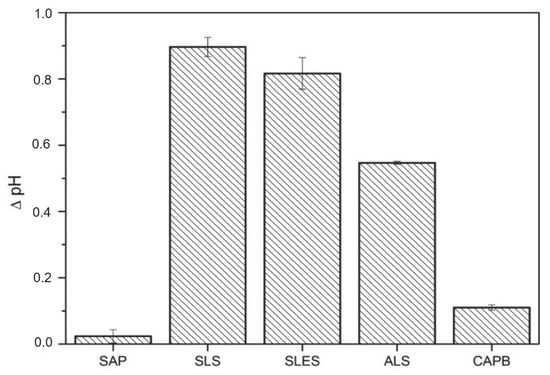 - Tavss, E.A.; Eigen, E.; Kligman, A.M. Anionic detergent-induced skin irritation and anionic detergent-induced pH rise of bovine serum albumin. J. Soc. Cosmet. Chem. 1988, 39, 267–272. [Google Scholar]