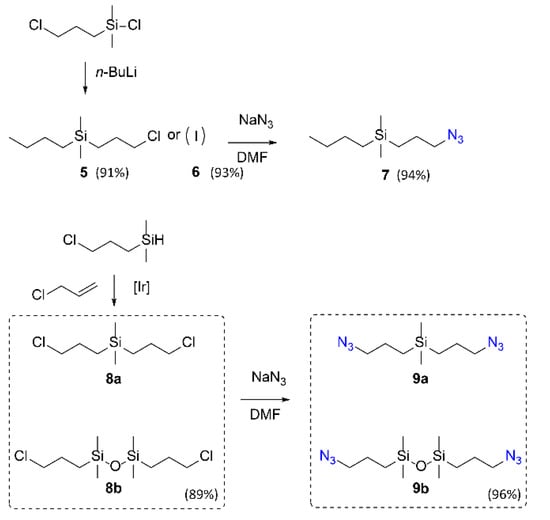 bis(3-azidopropyl)dimethylsilane 9a and bis(3-azidopropyl)dimethyldisiloxane 9b