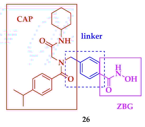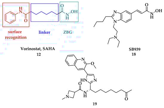 Histone deacetylases (HDACs), as important epigenetic modulators [22,23,24], have been extensively involved in the therapeutic investigation of many human diseases, especially cancer. Today, there are four anticancer HDAC inhibitors (vorinostat, panobinostat, belinostat, and romidepsin) that have been clinically approved by the US FDA [25,26,27,28,29], while the promising drug candidate quisinostat is currently in phase II of clinical trials [30] against tumors (Figure 3).