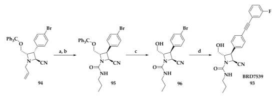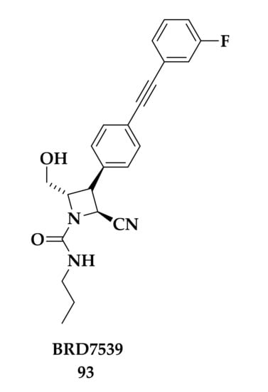 - Maetani, M.; Kato, N.; Jabor, V.A.P.; Calil, F.A.; Nonato, M.C.; Scherer, C.A.; Schreiber, S.L. Discovery of Antimalarial Azetidine-2-carbonitriles That Inhibit P. falciparum Dihydroorotate Dehydrogenase. ACS Med. Chem. Lett. 2017, 8, 438–442. [Google Scholar] [CrossRef]