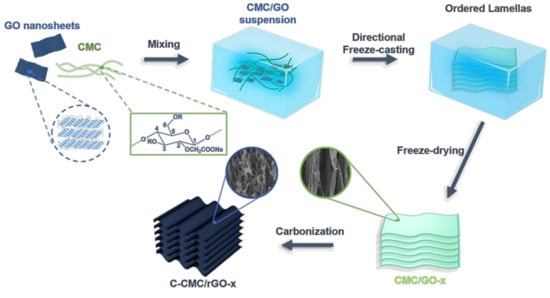 Figure 1. The fabrication process of carbon aerogel C-CMC/rGO-x.