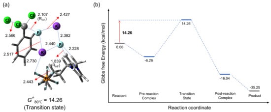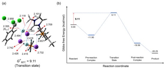 Calculated (a) transition state and (b) energetics of SN2 fluorination in [bmim]PF6 with substrate:KF = 1:2.
