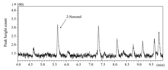 The following are available online. Figure S1: Presumed formation mechanism of 2-nonenal by lipid peroxidation. Data from Haze et al., 2001 [1], Figure S2: Procedure for extraction by headspace fiber SPME and desorption for GC–MS analysis. Data from Kataoka and Saito, 2011 [20].