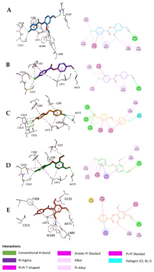 | ABMM-15 | Cl | H | H | CH2 | CHO | 48.22 ± 2.8 | 0.14 ± 0.1 | 12.35 ± 0.7 | 146.35 ± 2.7 |
